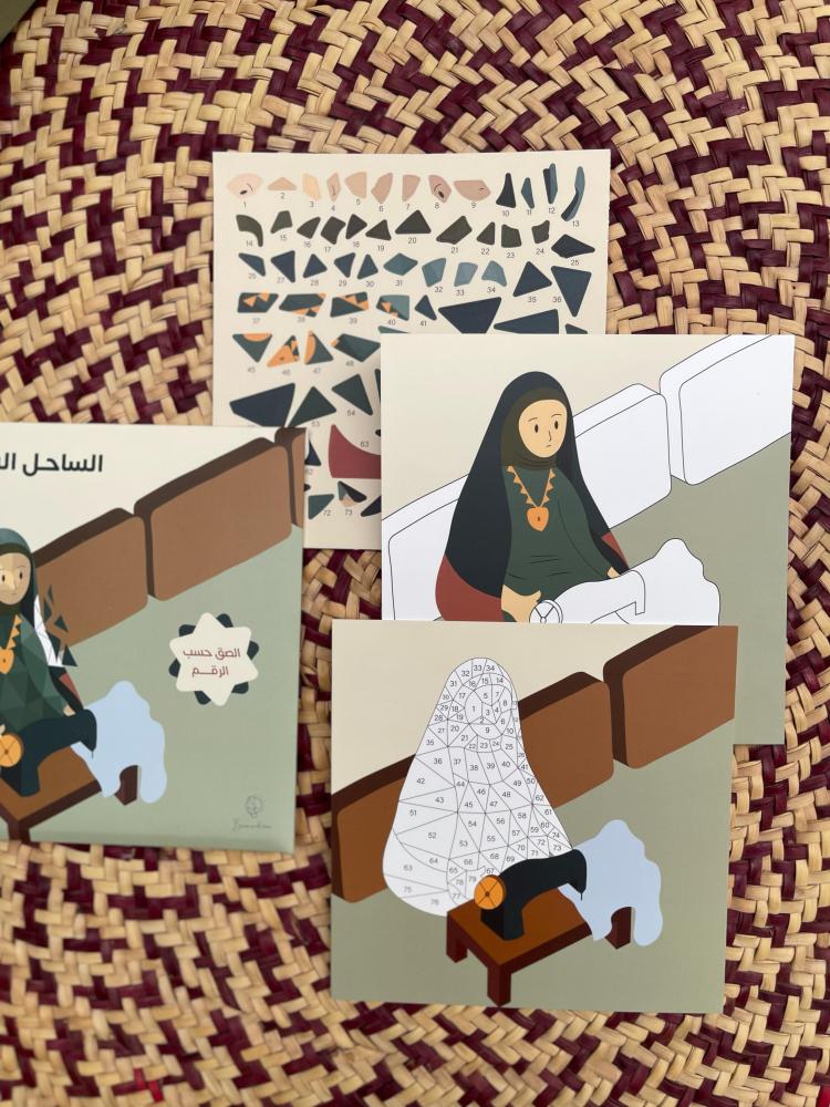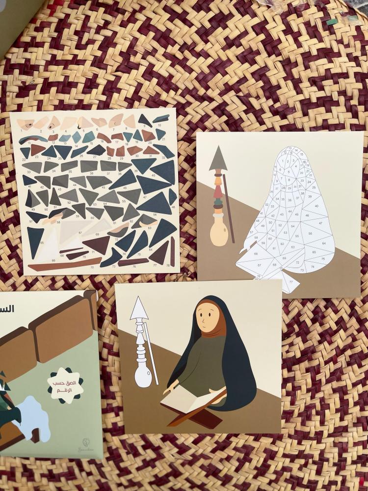 كل شخصية ثلا ث أوراق ( ورقة الرسم بالأرقام لتركيب الملصقات + ورقة الملقصات بالأرقام + ورقة دليل الرسم للتلوين )